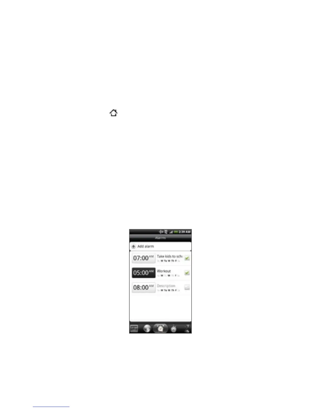 You can use the Clock application’s Alarms screen to set up one or