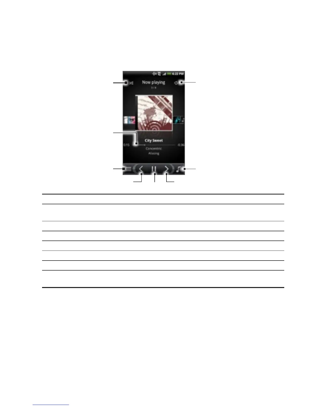 7 Tap to toggle between showing the Now playing list and Playback screen.