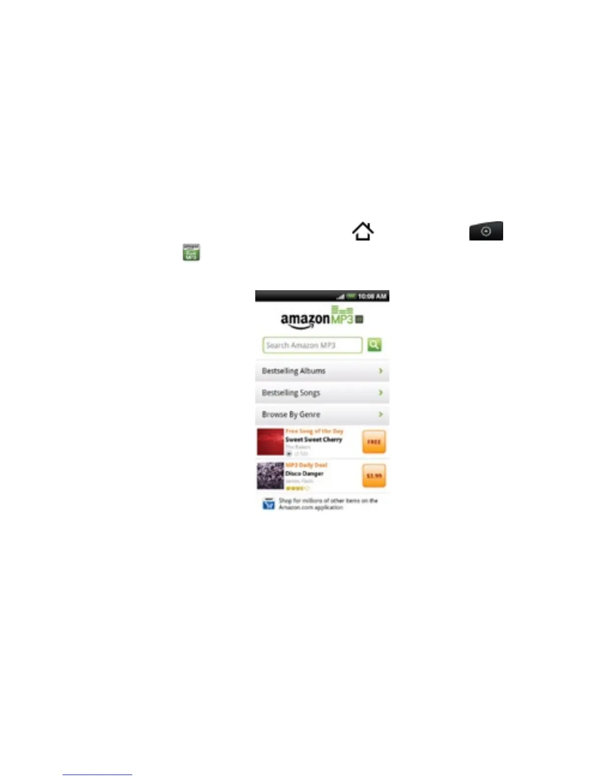 To open the Amazon MP3, press HOME , and then tap >
