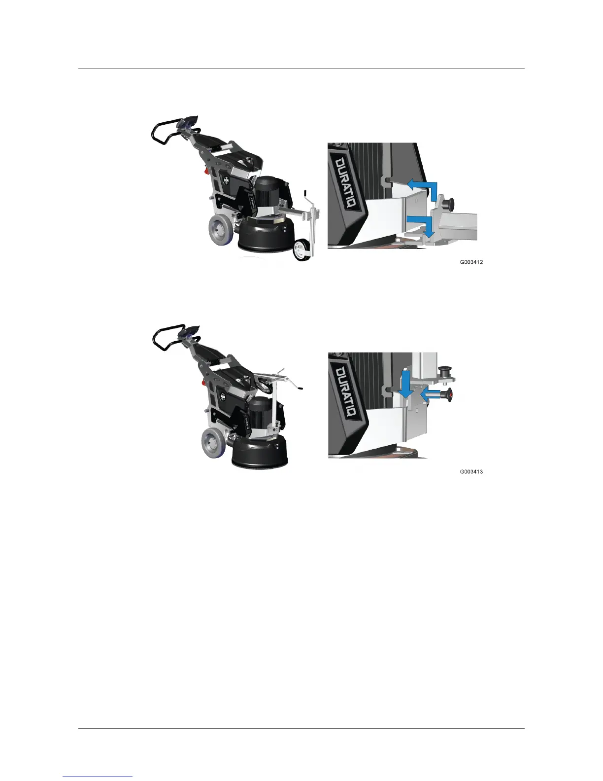 To ease movement, a support wheel can be firmly mounted on the machine.