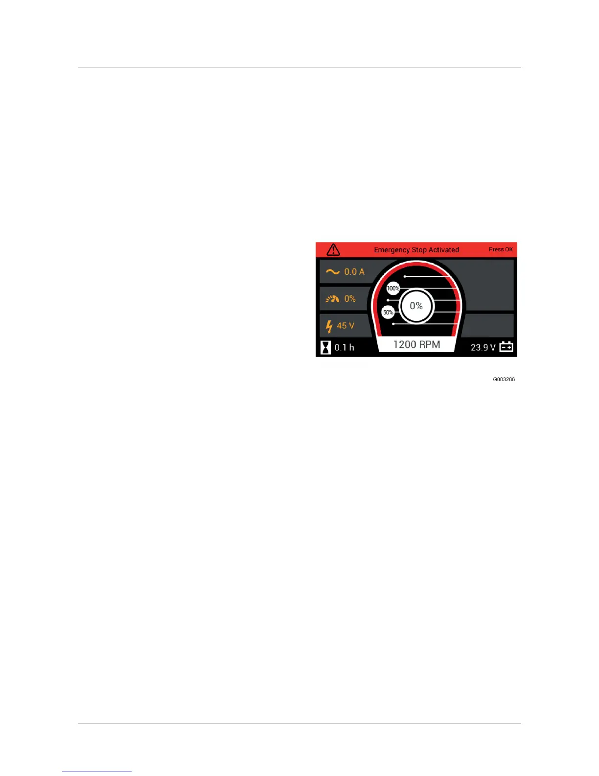 control. A warning message is displayed in yellow on the display, the machine can still be