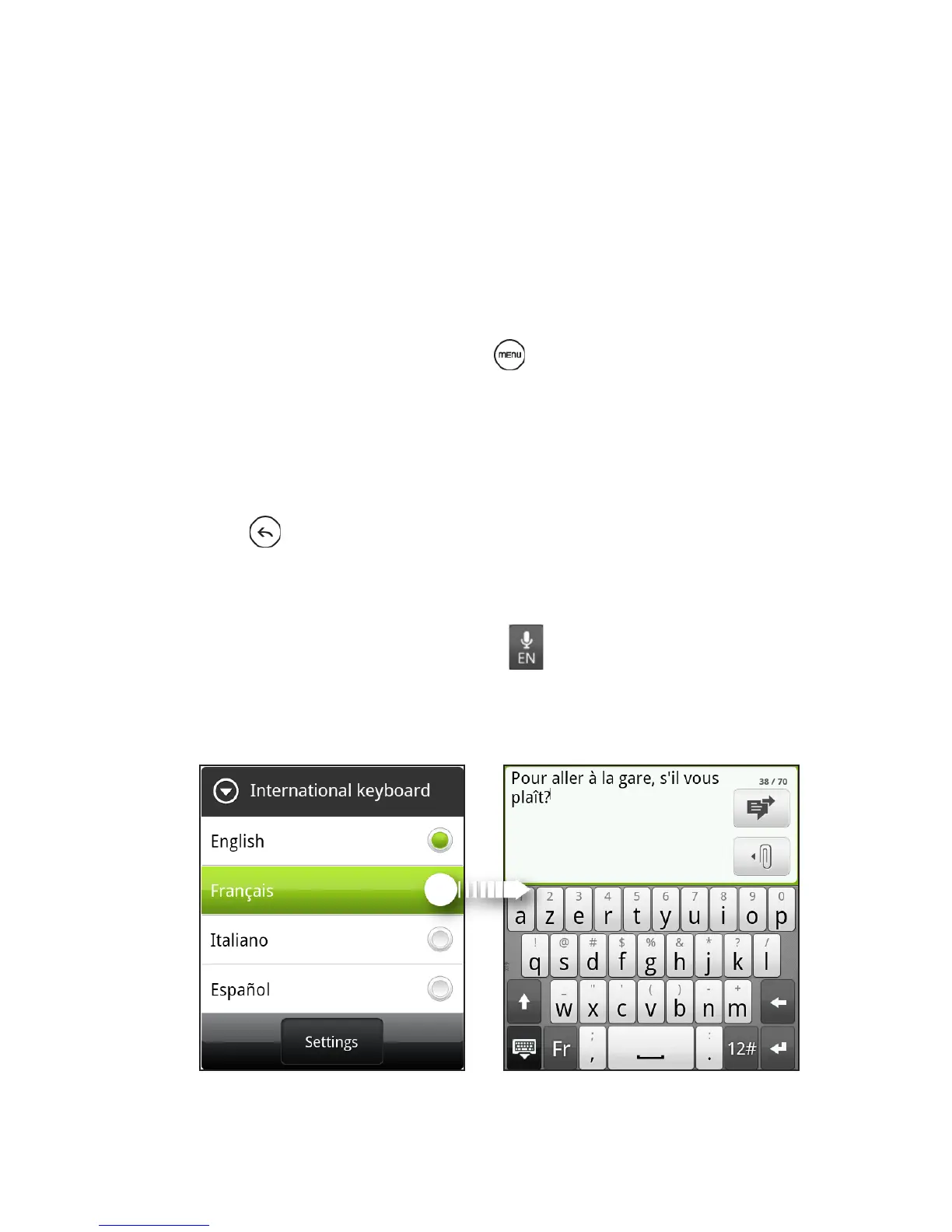 6. Tap the language switch key and then select the