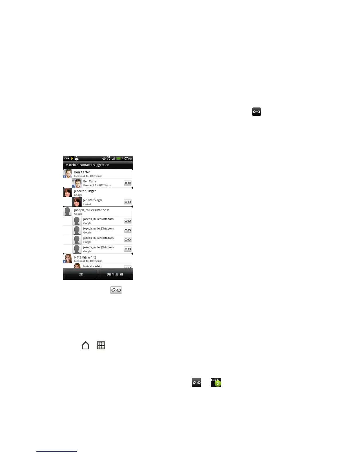 When your device finds contacts that can be merged, you’ll see a link icon ( ) in the