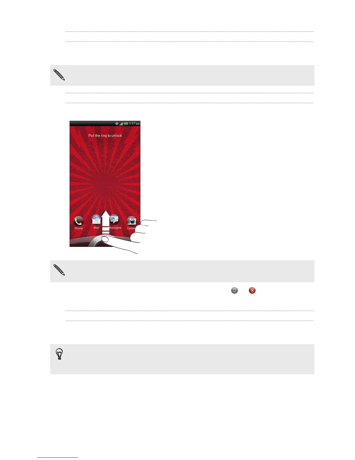 To wake HTC EVO V 4G up manually, press the Power button. You’ll need to unlock