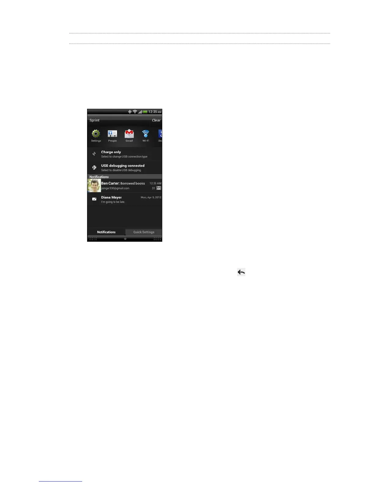 1. To open the Notifications panel, press and hold the status bar, then slide your
