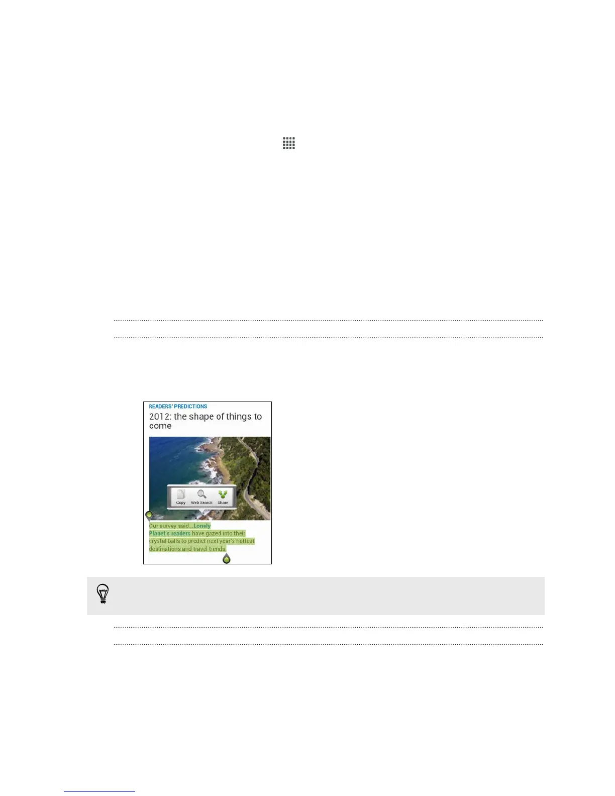 In apps such as the web browser and Mail, you can select and copy text, and then