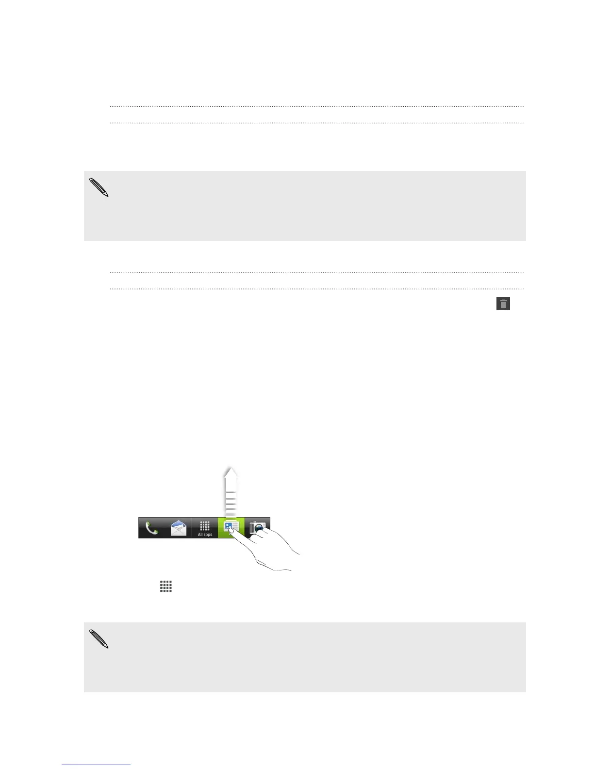 1. Press and hold the widget or icon you want to remove, and then drag it to .