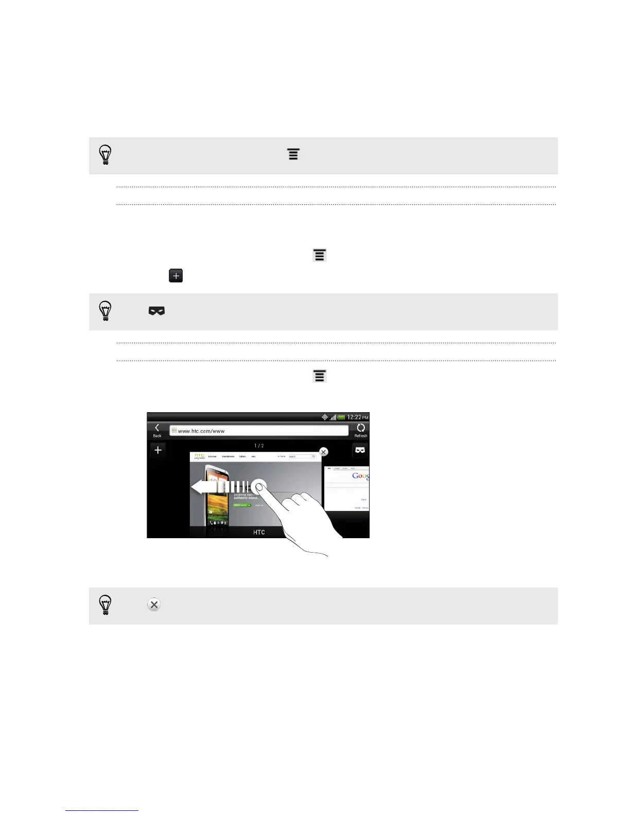 2. Slide your finger until the webpage you want to view appears.