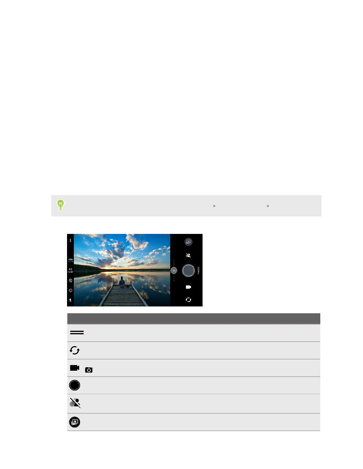 § On the Home screen, tap the camera icon to open the Camera app.