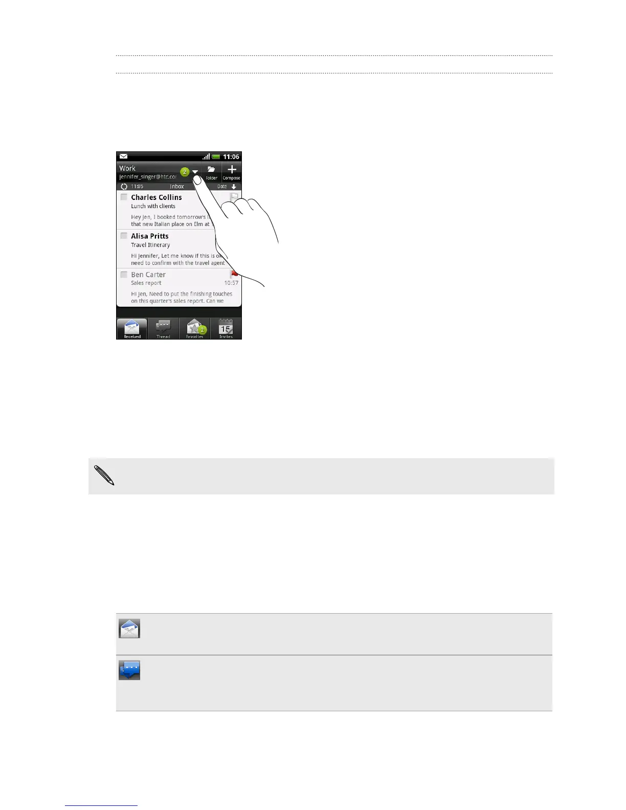 To switch between email accounts, tap the bar that shows the current email account,