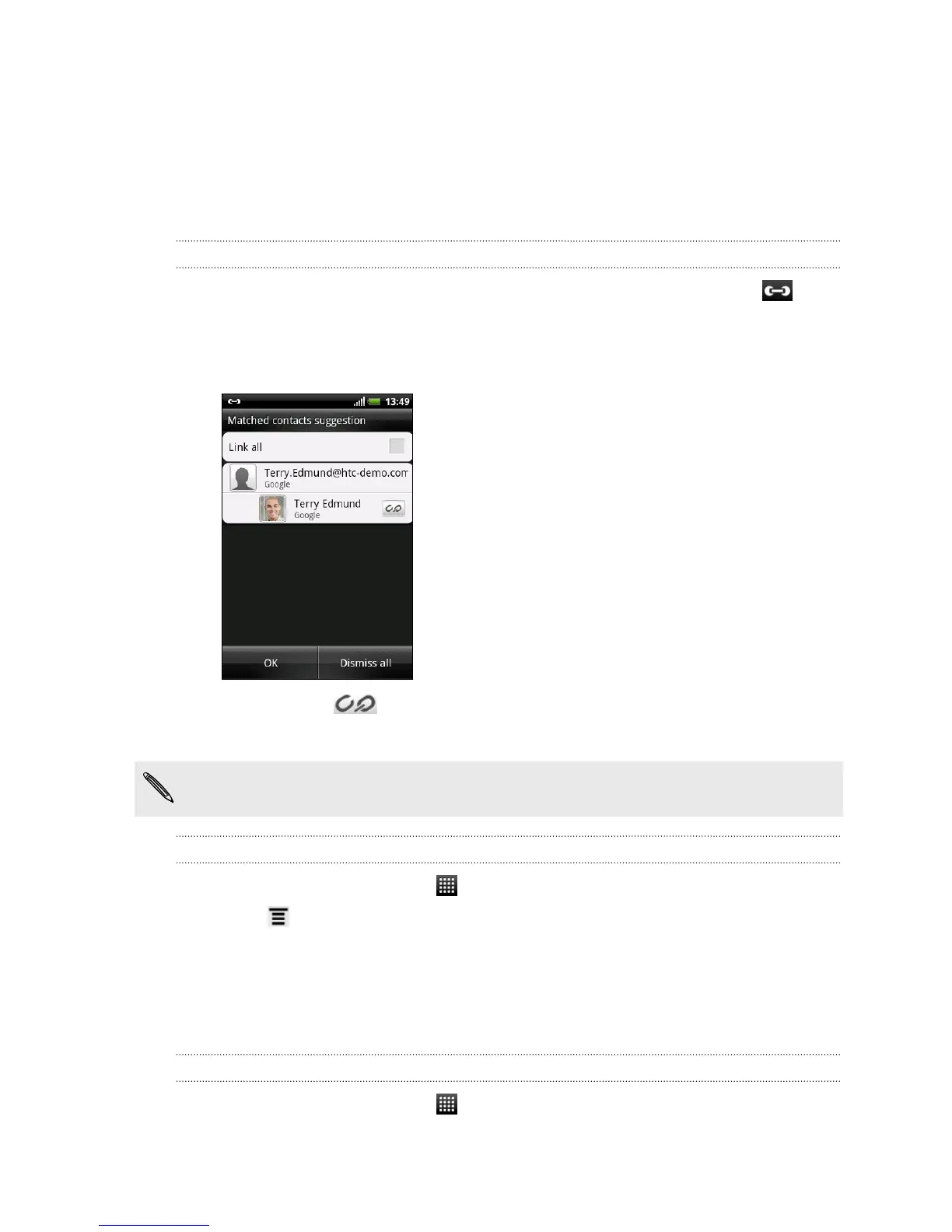 When HTC Explorer finds contacts that can be merged, you’ll see a link icon in