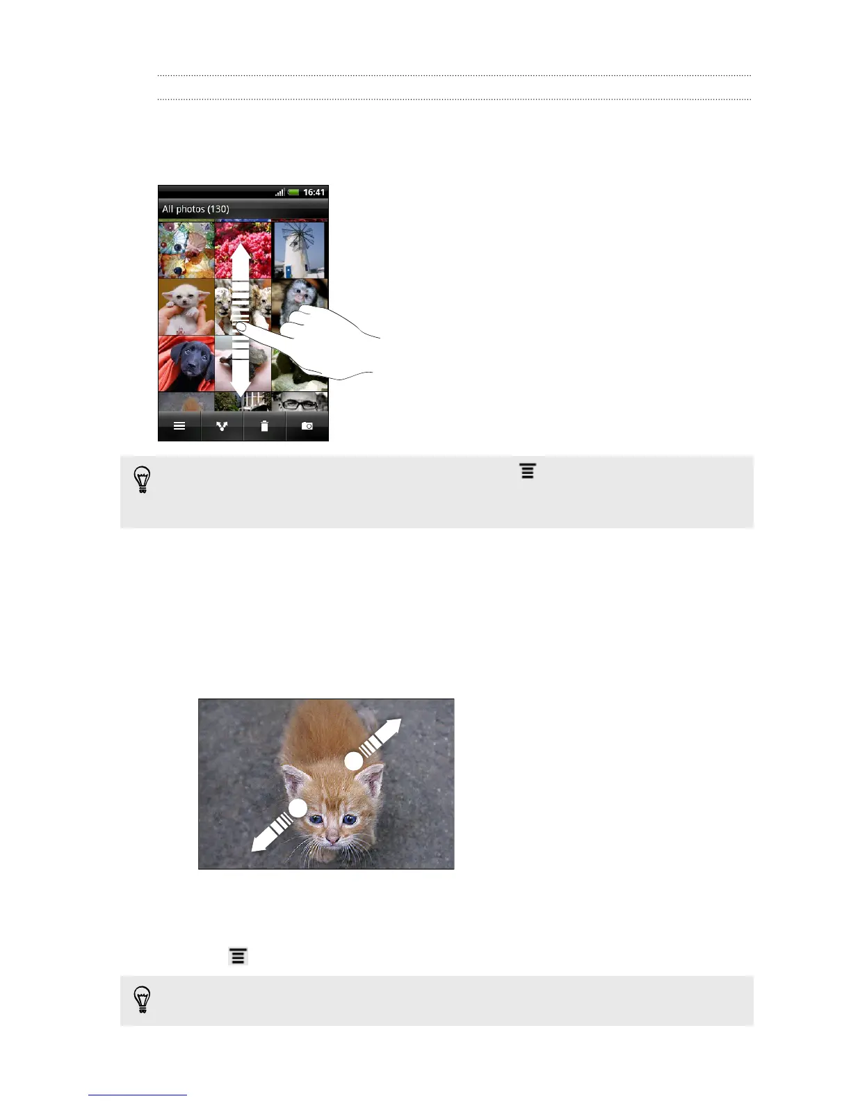 § Press your thumb and index finger on the screen and then spread your fingers
