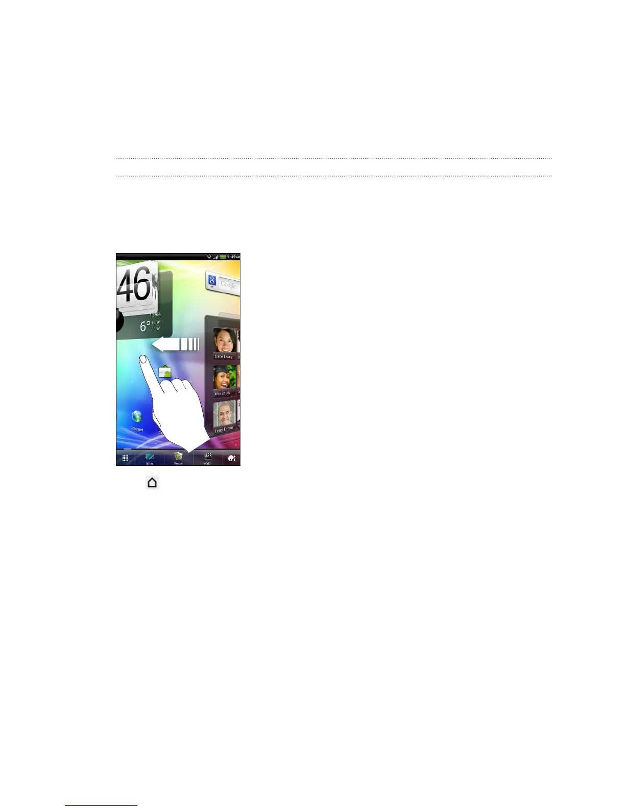 Your Home screen is where you make HTC Flyer your own. It comes with a weather