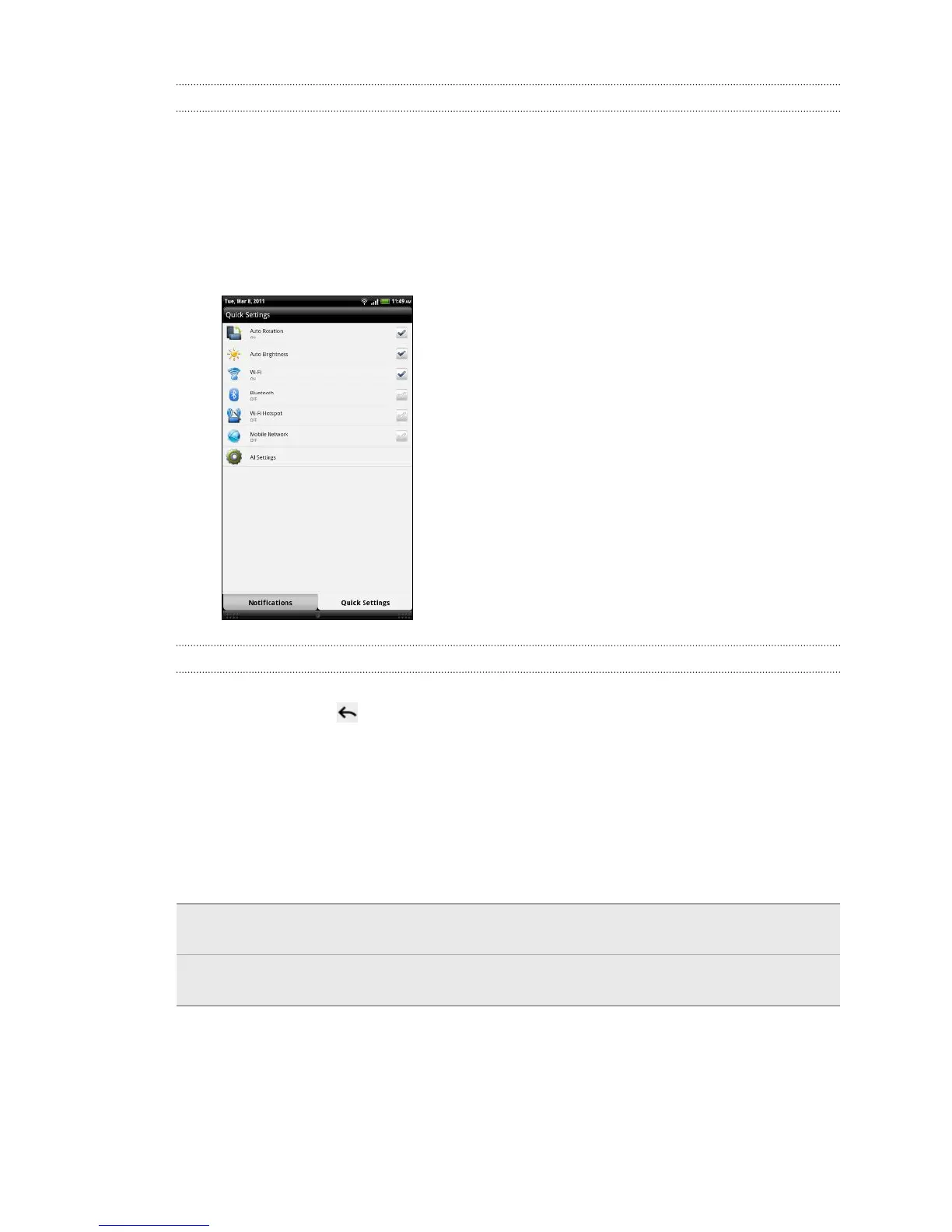 The Quick Settings tab lets you easily turn on Wi-Fi, Bluetooth, GPS, and more, and