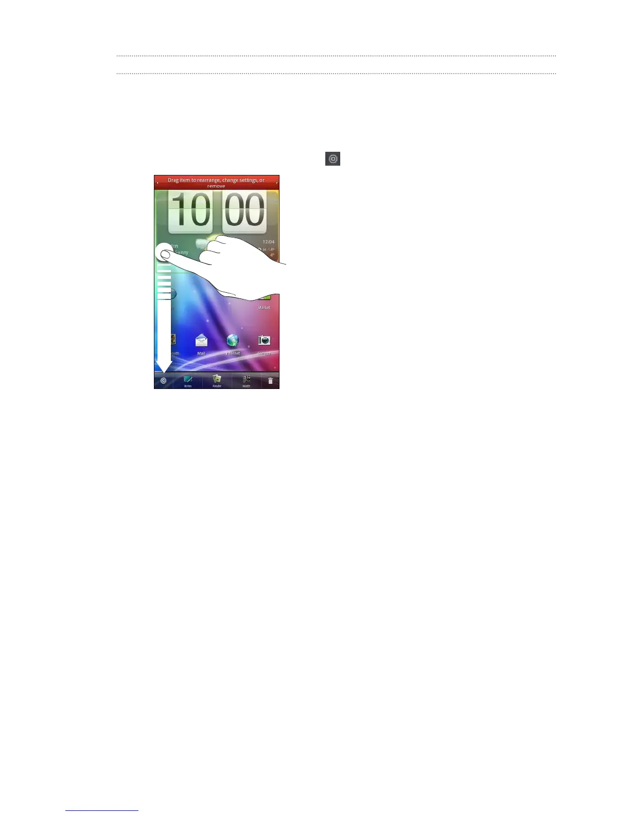 1. Press and hold a widget on the Home screen. HTC Flyer vibrates and you’ll see a