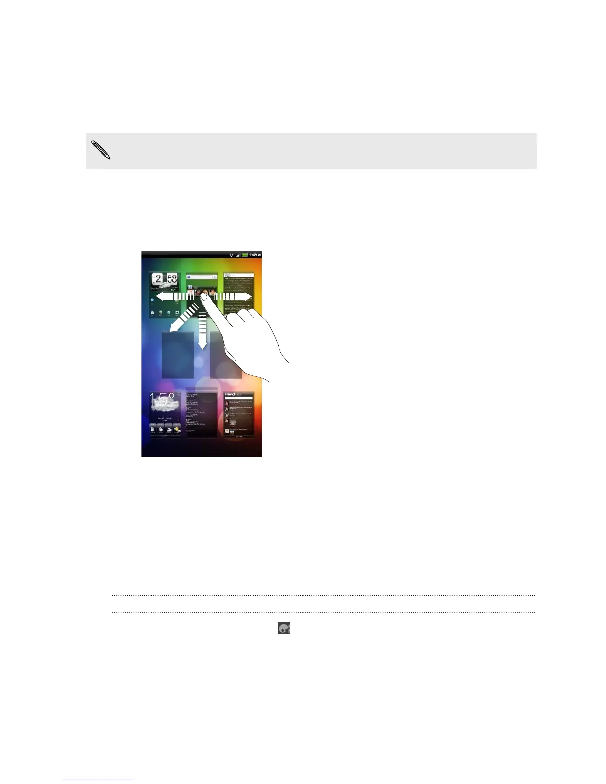 2. Press and hold the thumbnail of the home screen you want to move. HTC Flyer