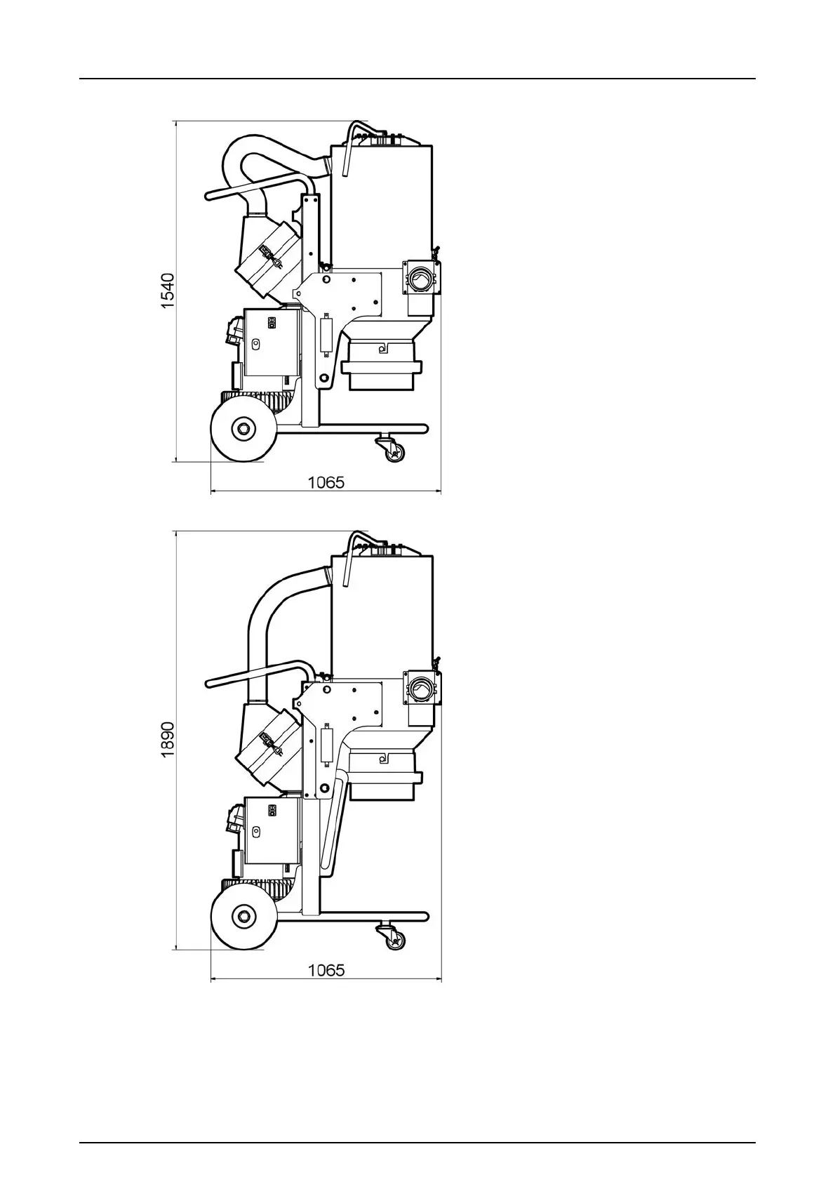 Figure 7-2. Height and length of the dust extractor, in the operating position, in millimetres
