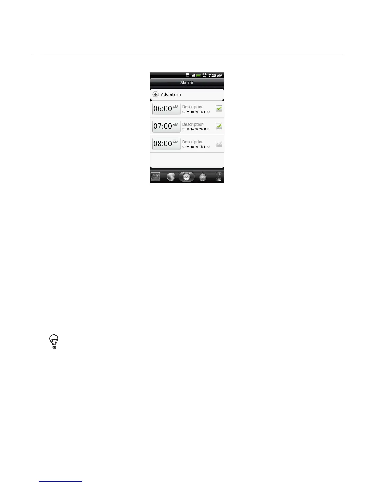To turn off an alarm, clear the check box (by tapping it) of that alarm.