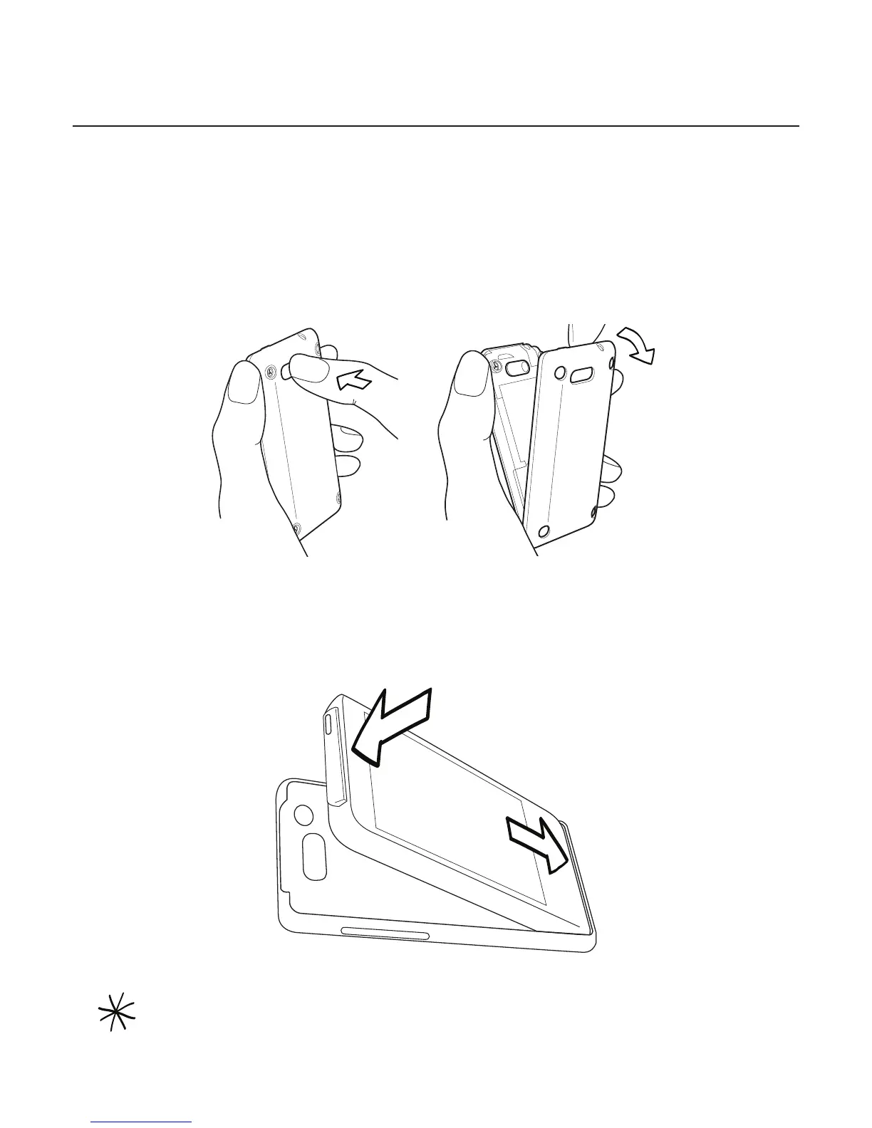 Remove the back cover to access the battery compartment, SIM card slot, and storage card