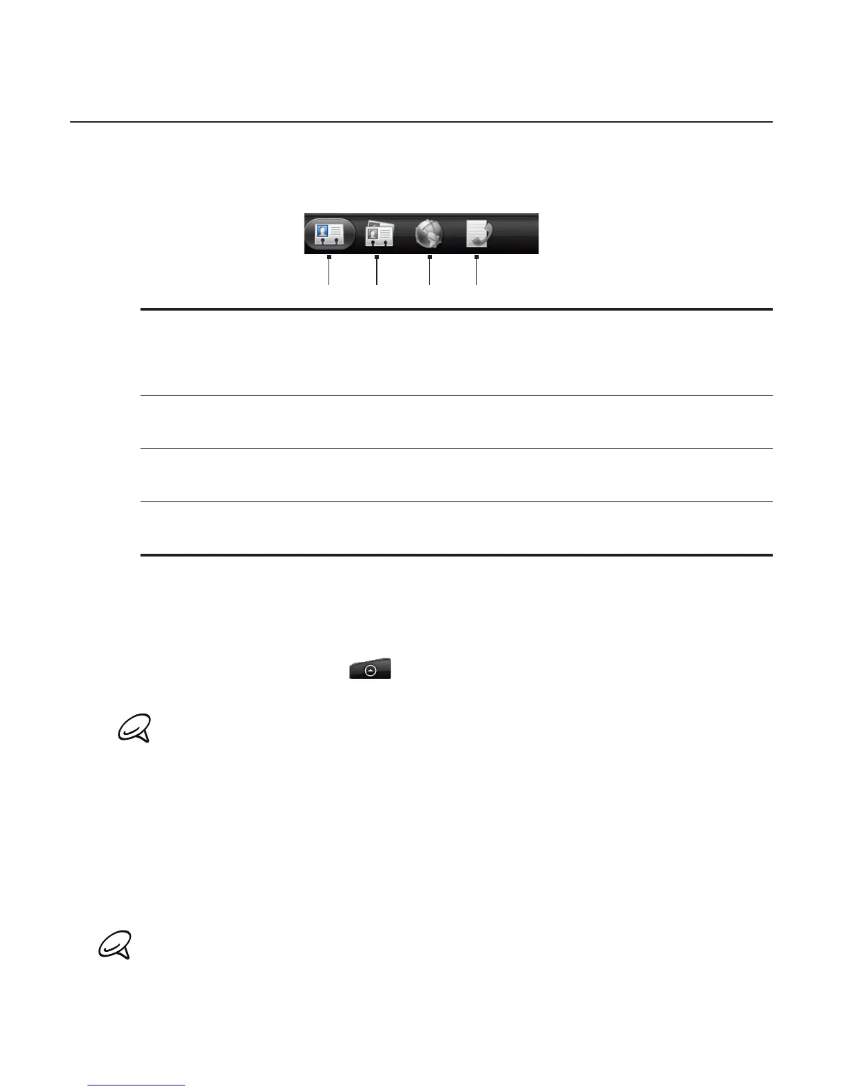 Lists all your dialed numbers and received and missed calls. See “Using Call History” in the Phone