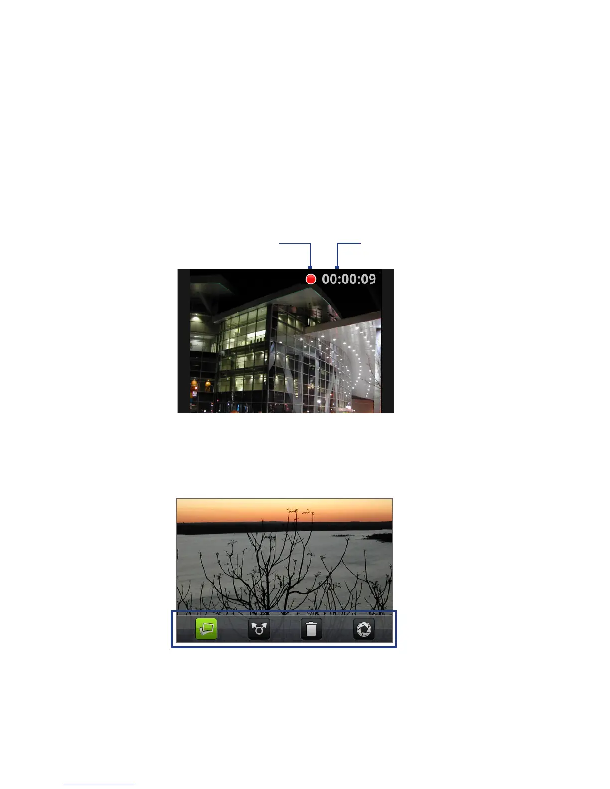 After capturing a photo or video, the review screen lets you save, view, send, or