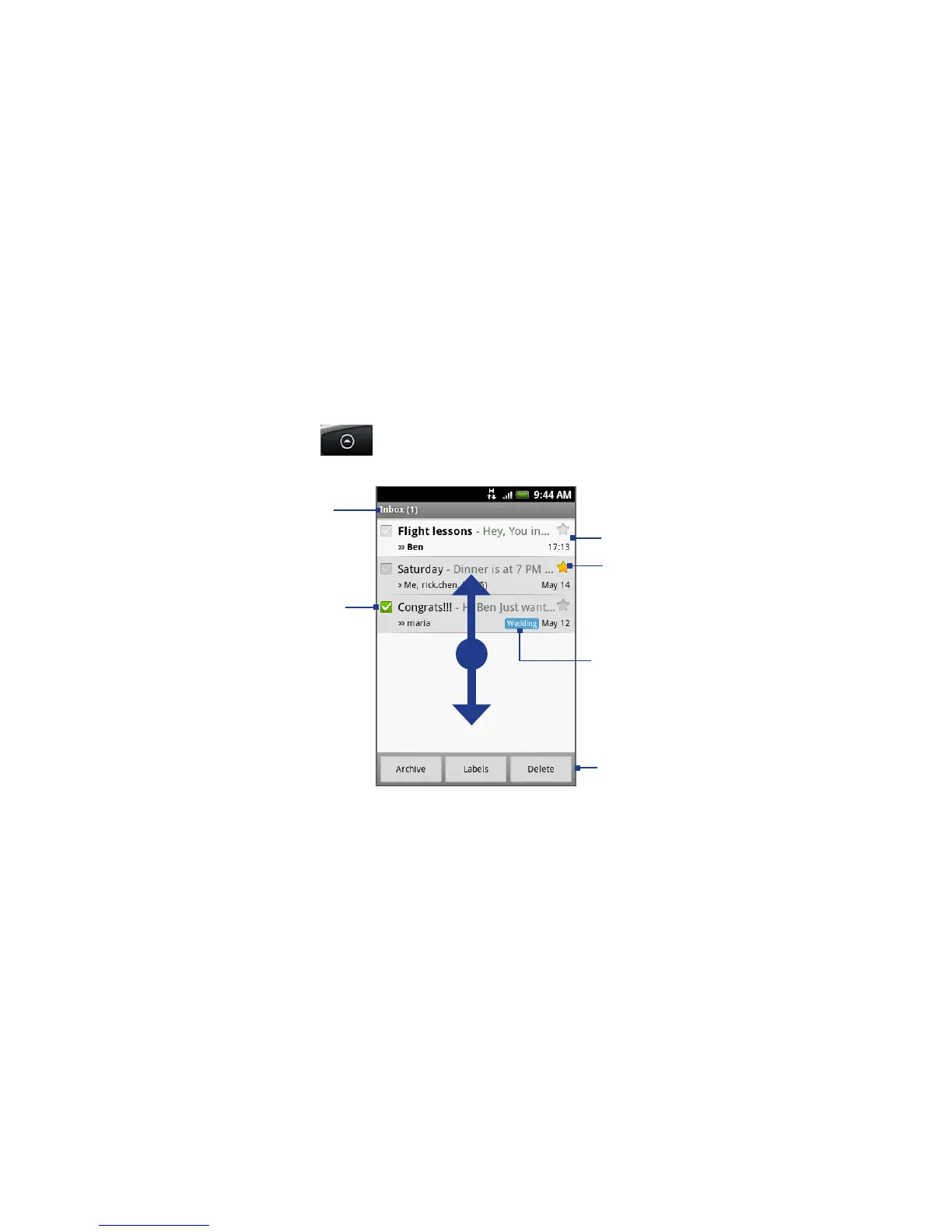 Press MENU and then tap Refresh to send or receive new emails and to synchronize