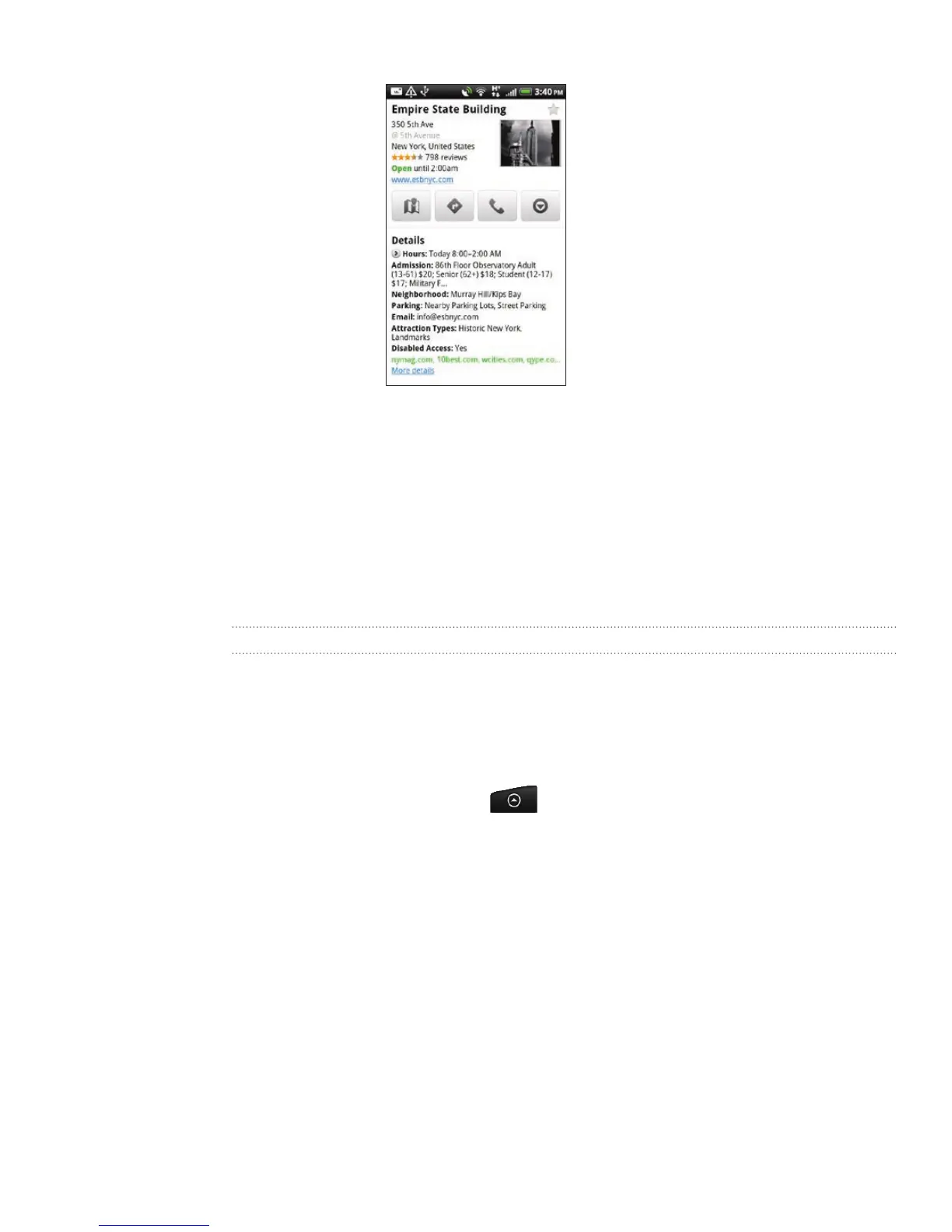 Tap the onscreen buttons to view the location on a map, get directions, view