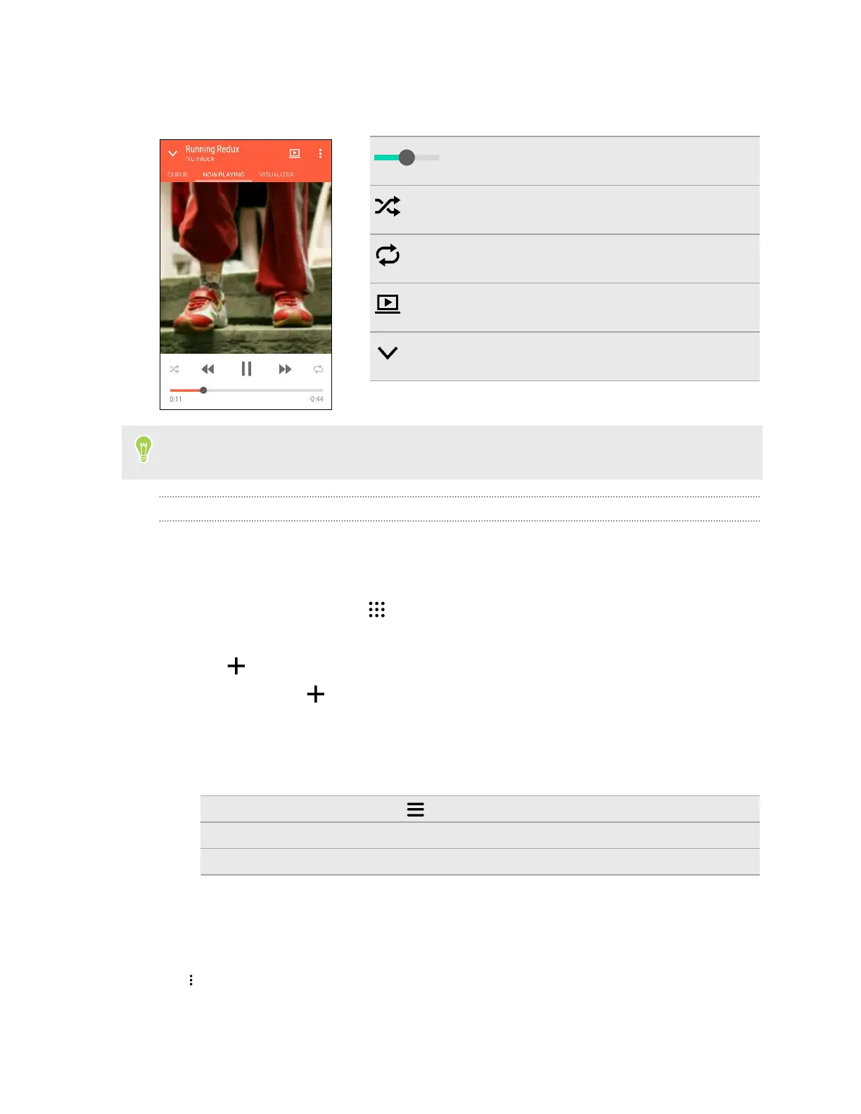 4. Tap the onscreen icons to control music playback, repeat songs, and more.