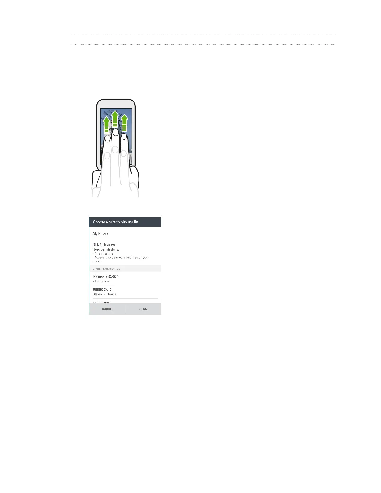 5. To stop wireless media sharing and disconnect from the device, swipe down with three