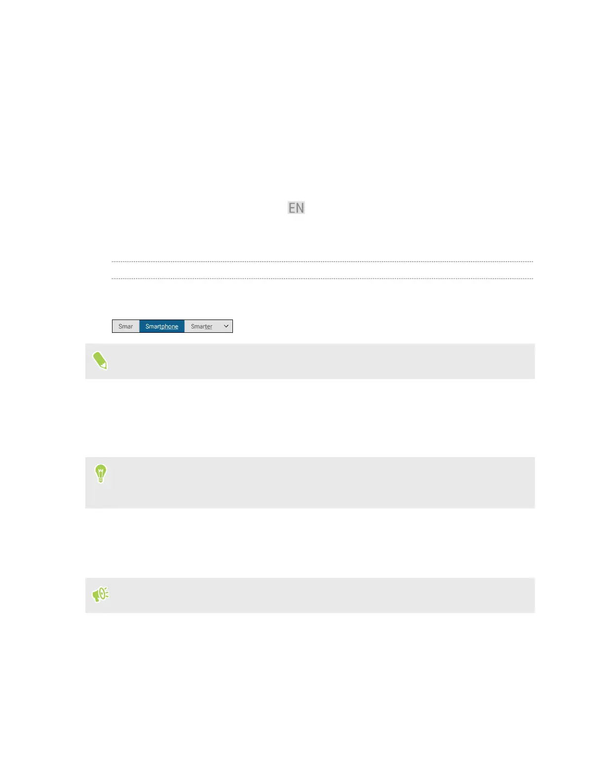 § Tap the language key, for example, , until you see the keyboard language you want to use.