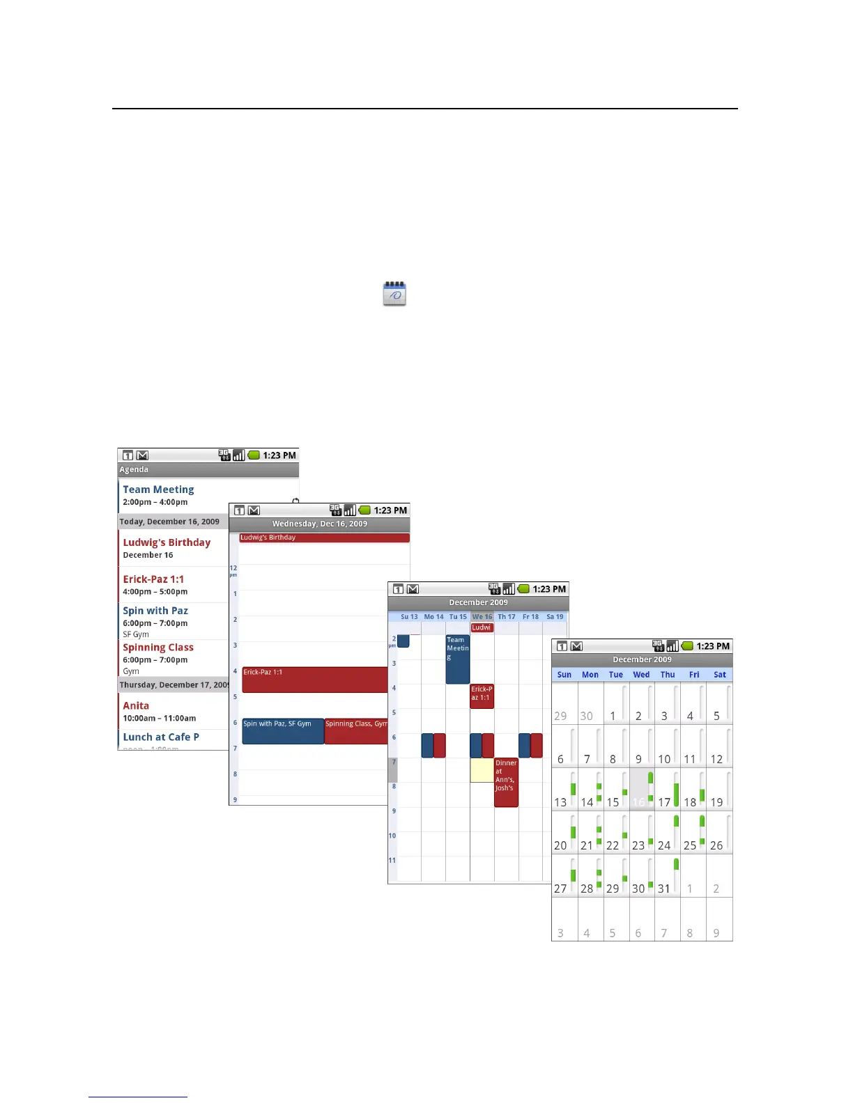 S Touch the Calendar icon on the Home screen or in the Launcher.