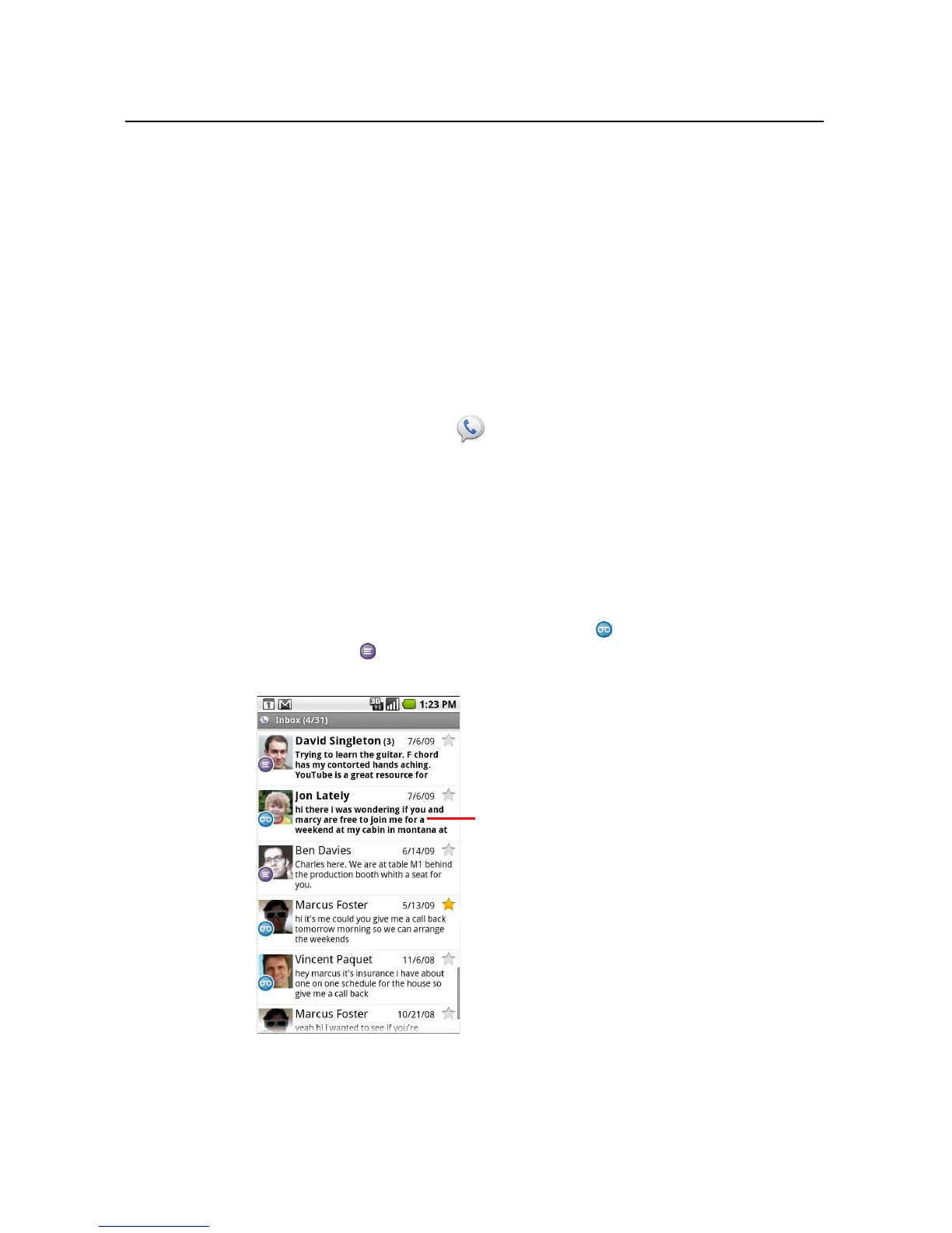 you have not used Google Voice recently, the contents of your Inbox are displayed.