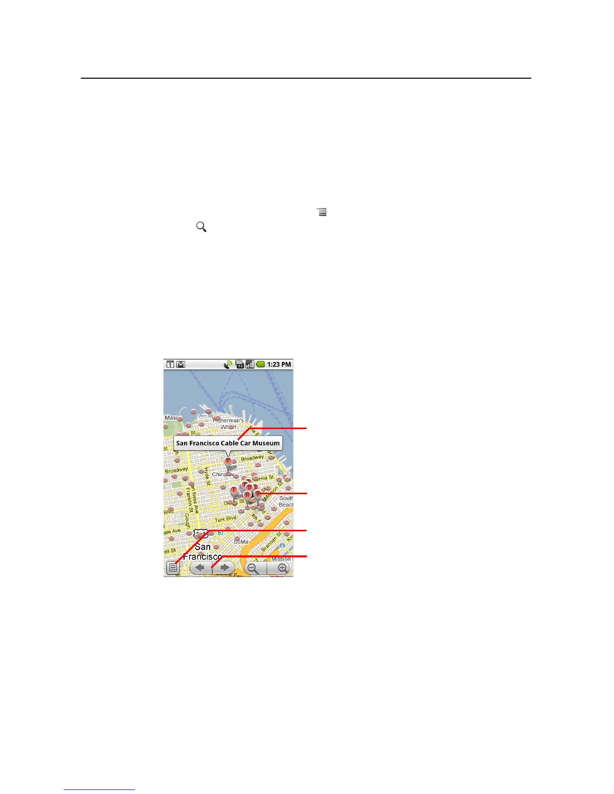 1 While viewing a map, press Menu and touch Search. Or press the Search