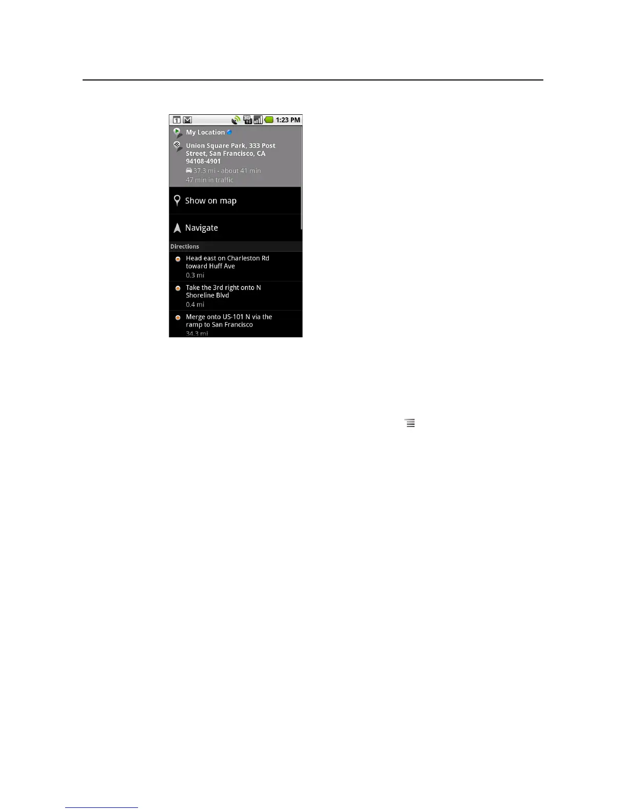You can also touch Navigate to get spoken, turn-by-turn directions from Google