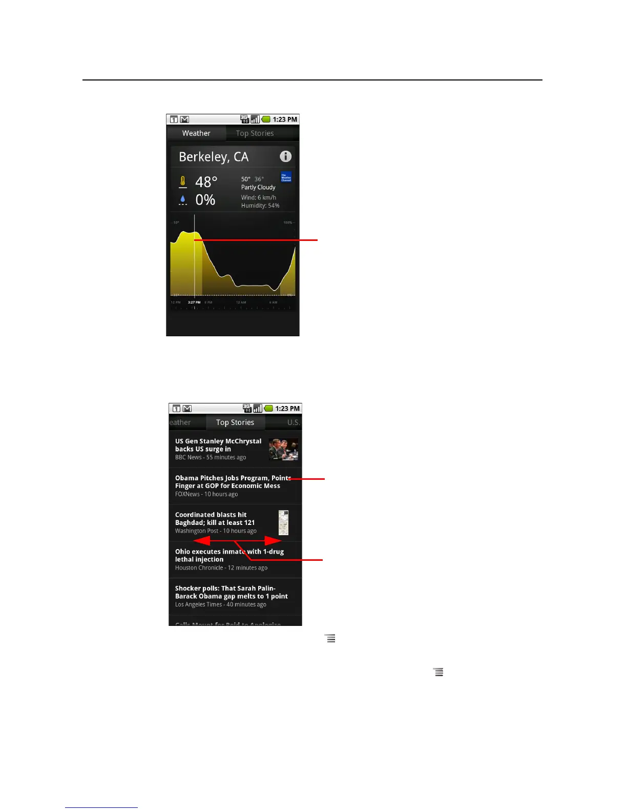 S While viewing the weather or news headlines, press Menu and touch Refresh