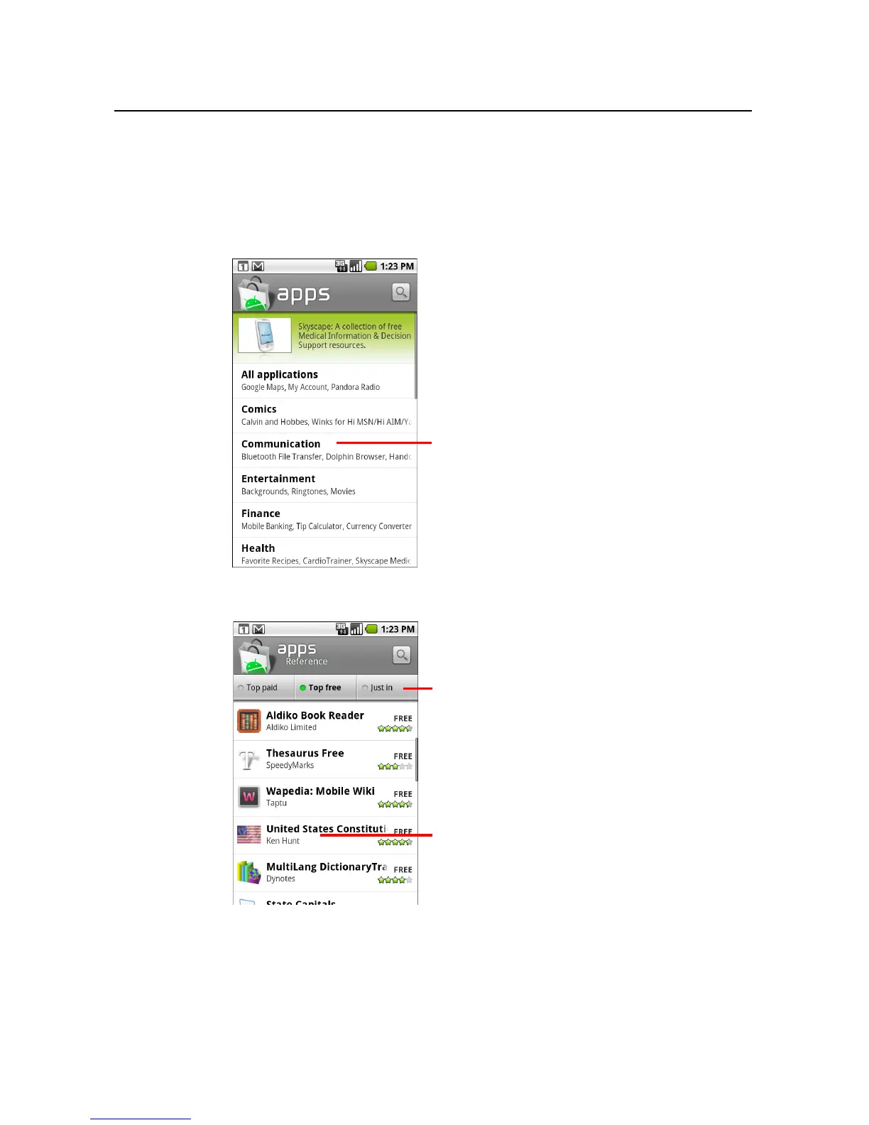 1 On the Android Market home page, touch a top-level category, such as Apps or