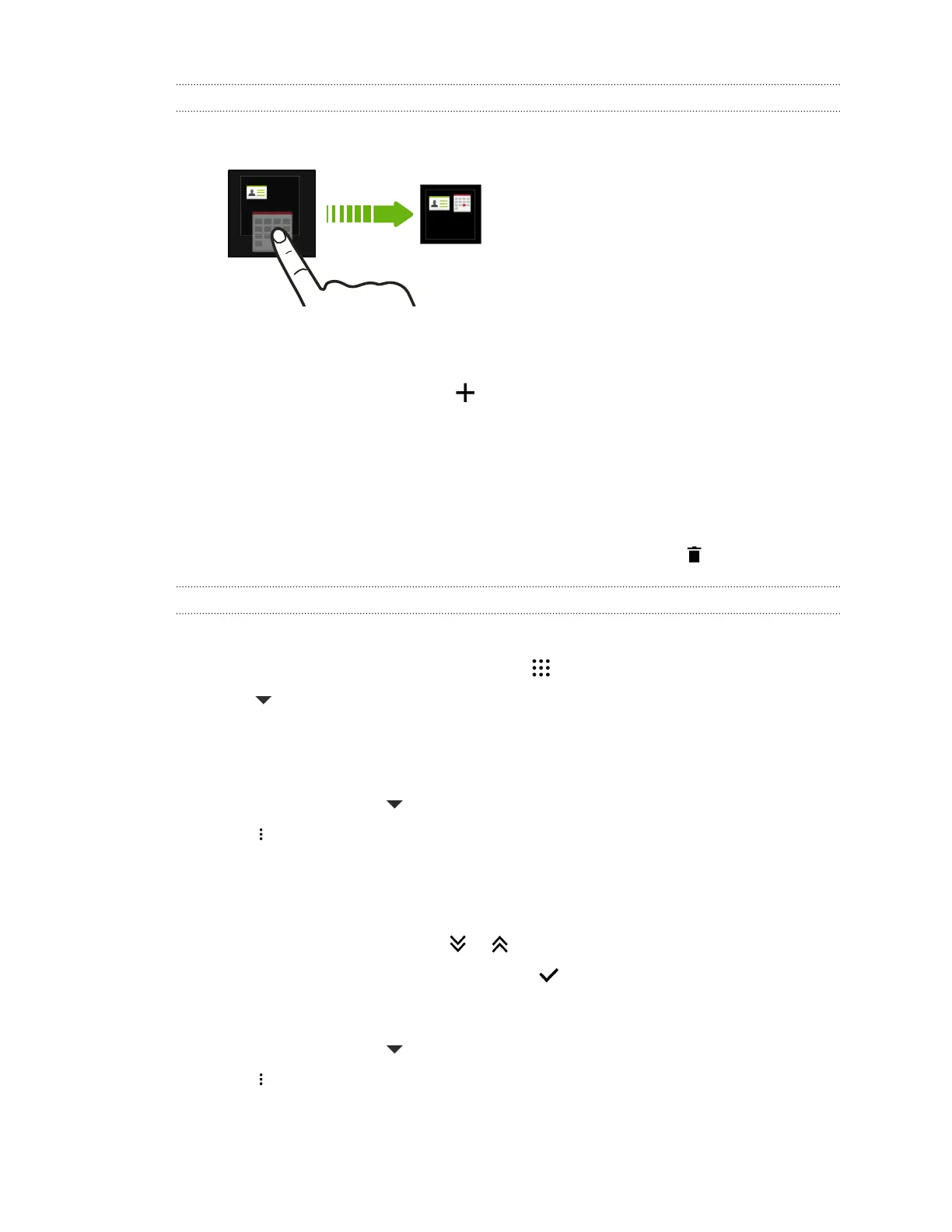 You can also add shortcuts to settings or information to a folder. Add a shortcut first to a widget