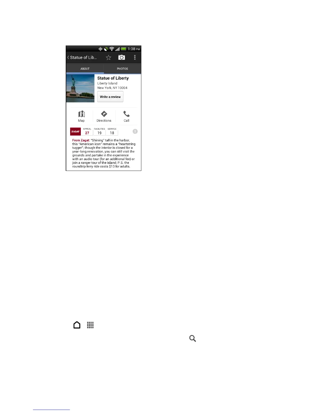 6. Touch the onscreen buttons to view the location on a map, get directions, view the