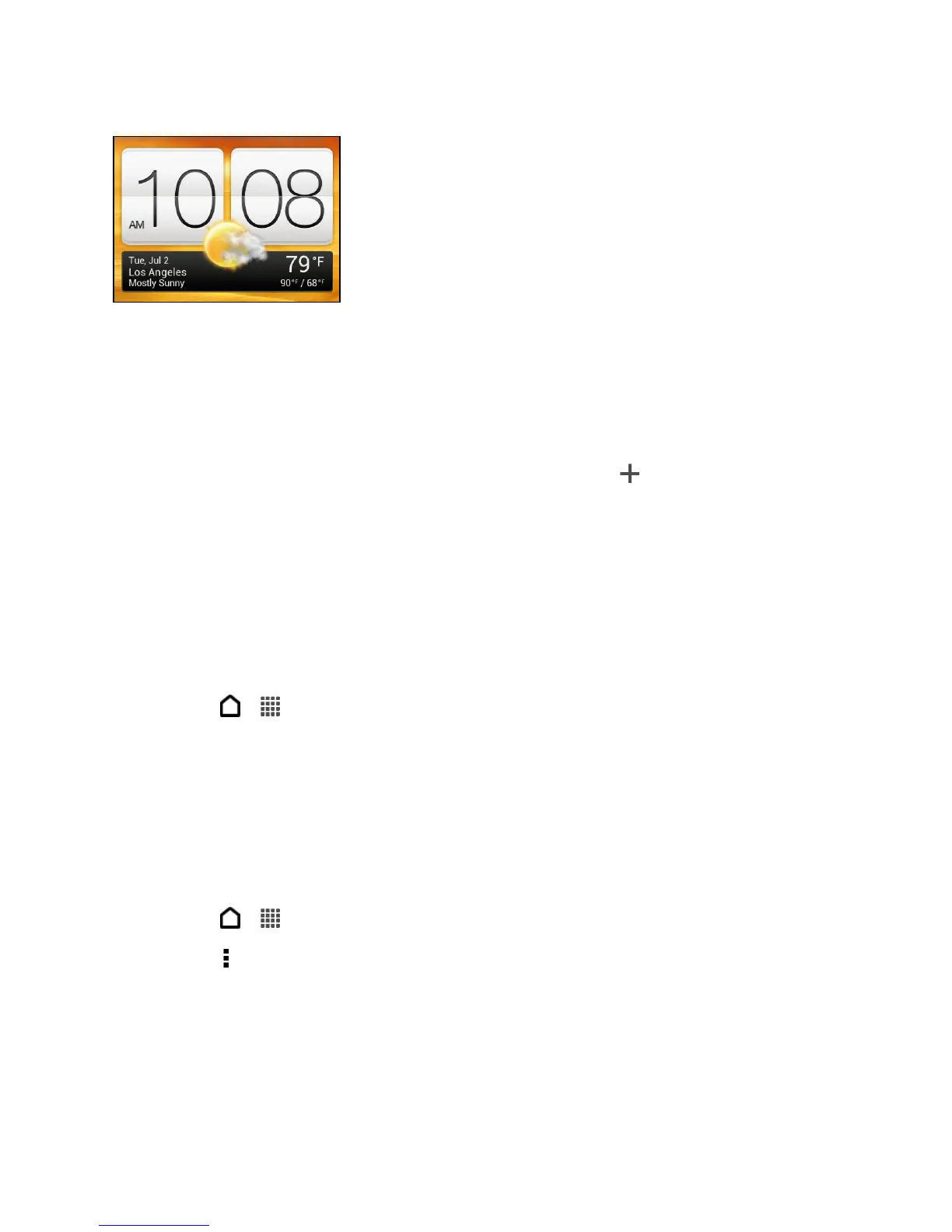 By default, the Clock widget displays your current weather. You can customize the Clock widget