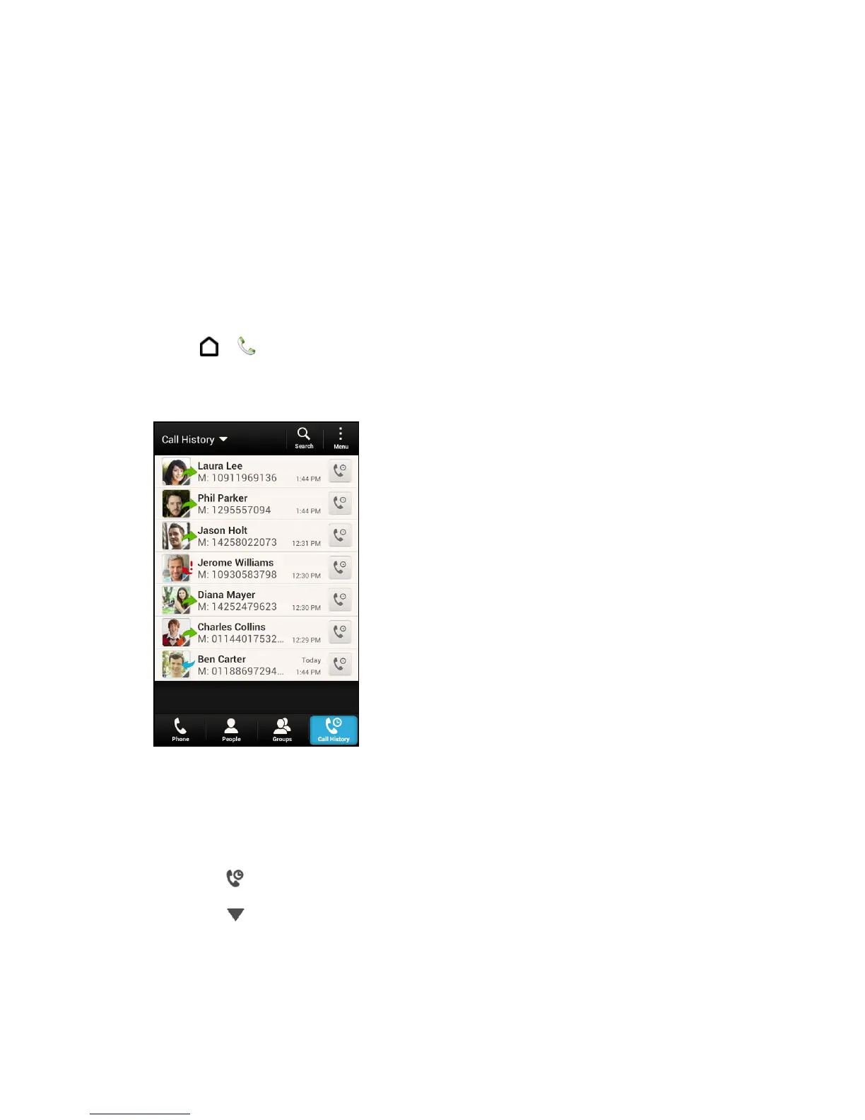 1. Touch > > Call History tab.