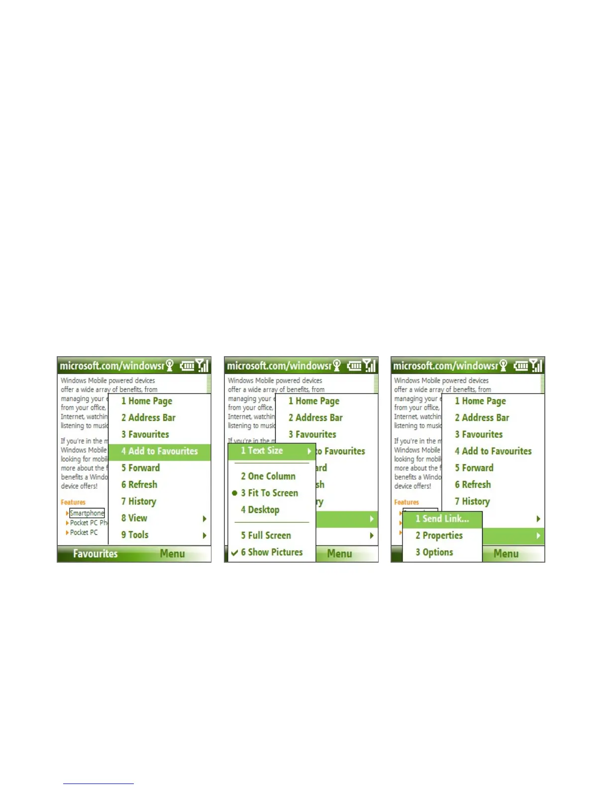 let you change the view, save Favorites, and set Internet Explorer Mobile