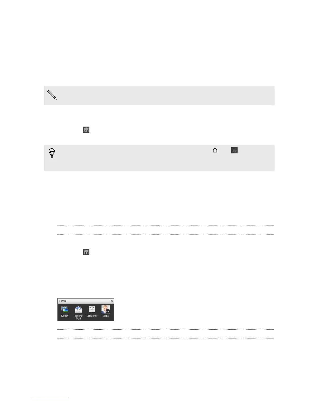 The shortcuts available depend on the apps that are installed on HTC Sensation XE