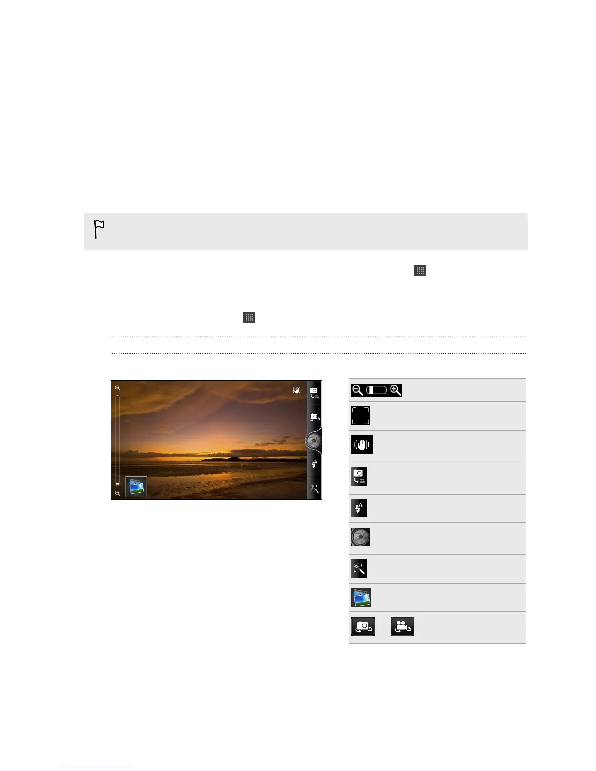 § To open the camera in photo mode and take photos, tap from the Home
