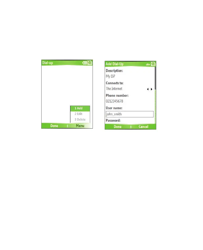 1. On the Home screen, click Start > Settings > Connections > Dial-up.