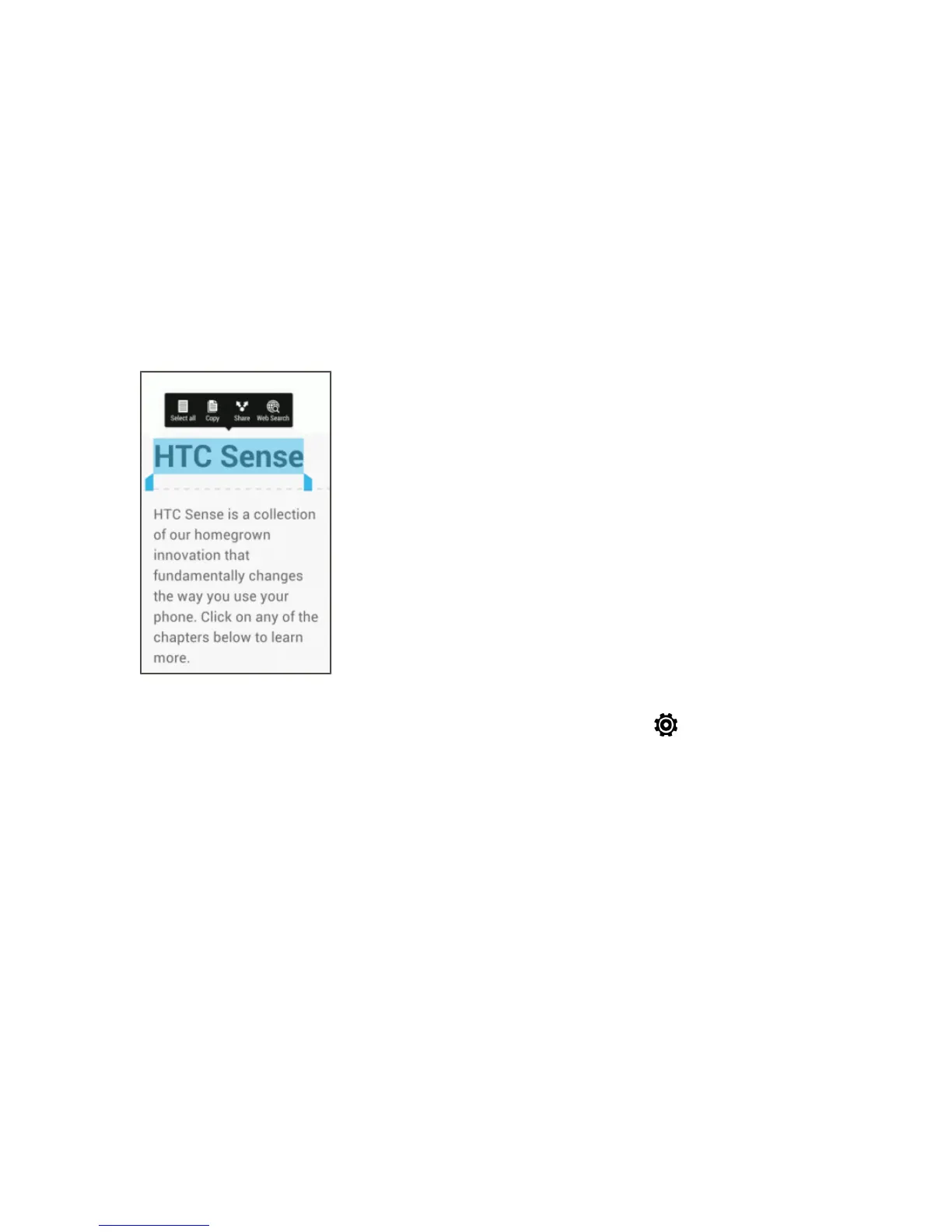 InHTCappssuchasInternetandMail,youcanselectandcopytext,andthenpasteorshareit.