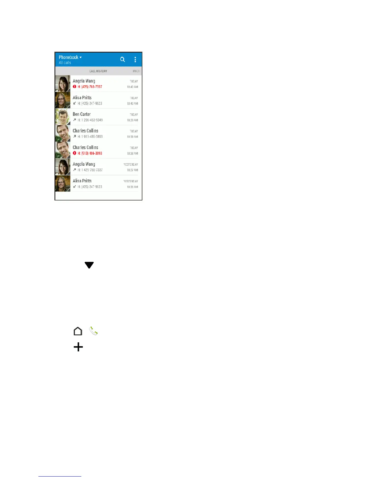 l Touchanameornumberinthelisttocall.SeeCallFromCallHistory.