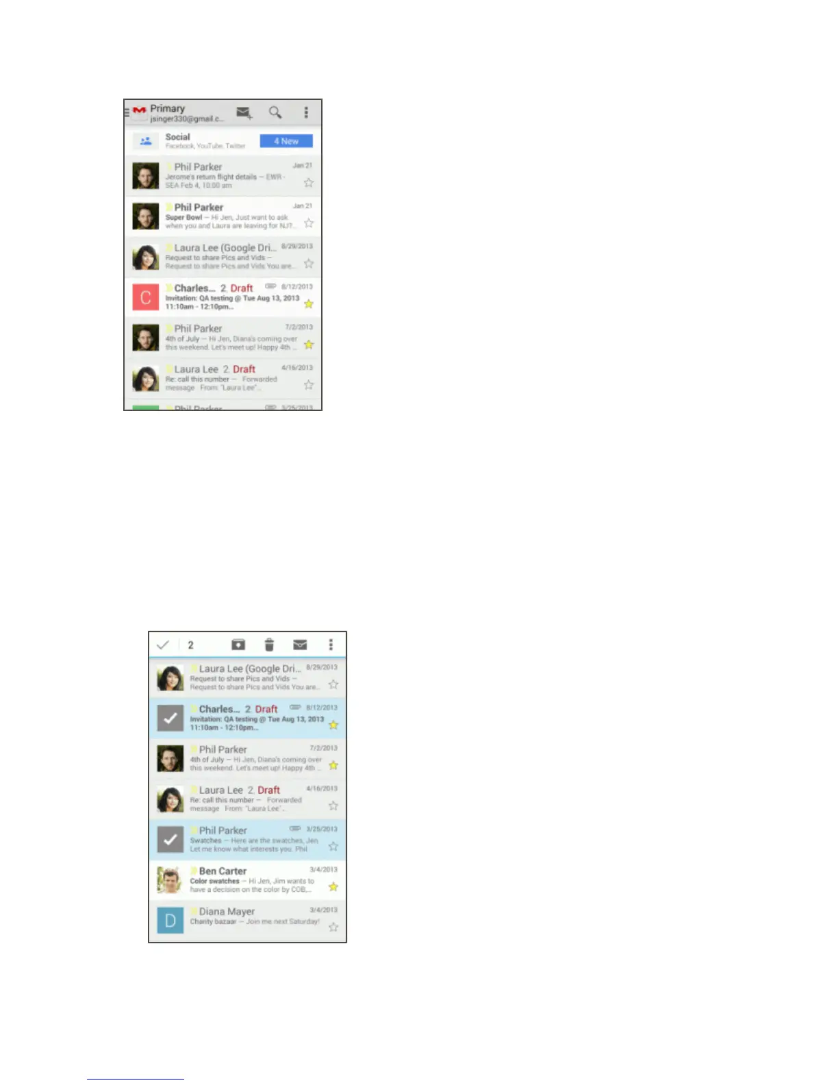l Touchthesenderimageorlettertiletoselectoneormoremessagesorconversations.You