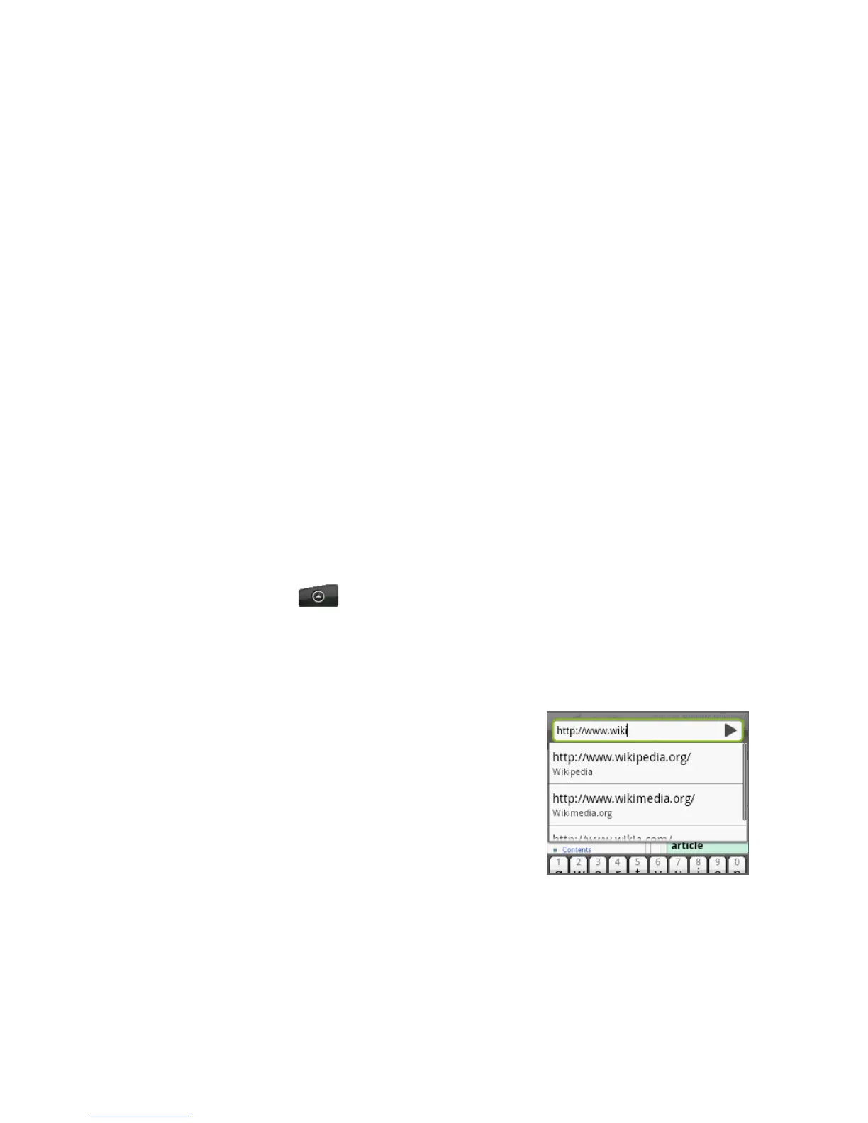 On the Browser screen, press MENU and then tap the URL field on top of the