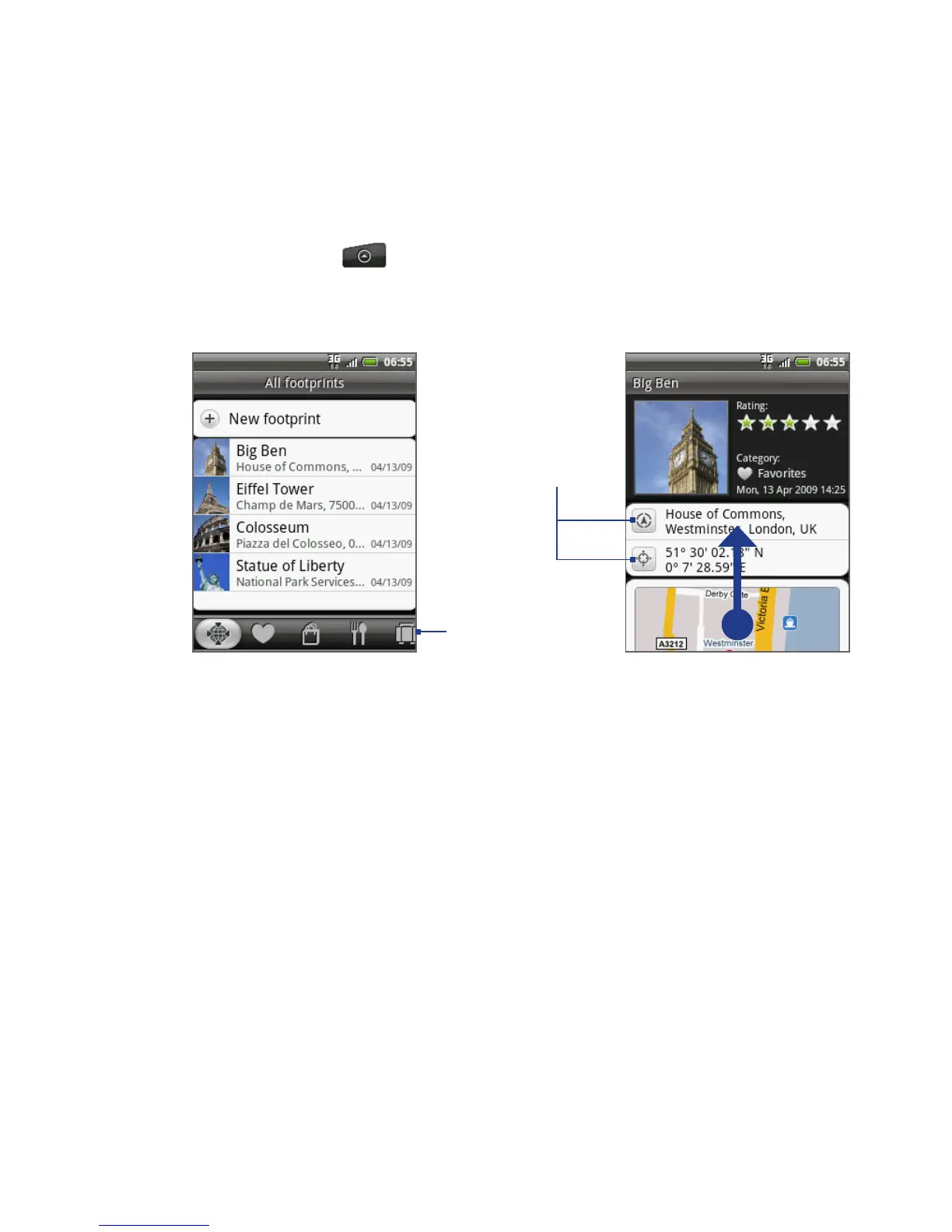 1. Press HOME, tap , and then tap Footprints.