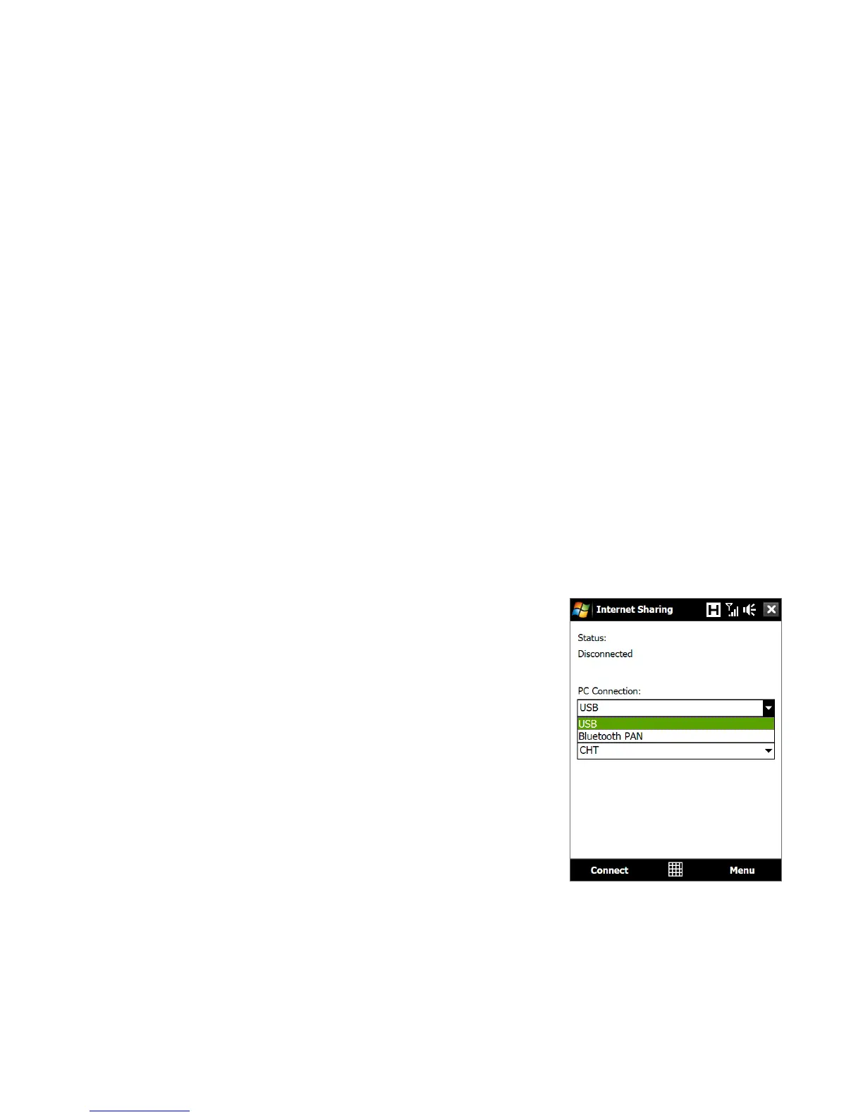 • Before using Internet Sharing, disconnect from Windows Mobile Device